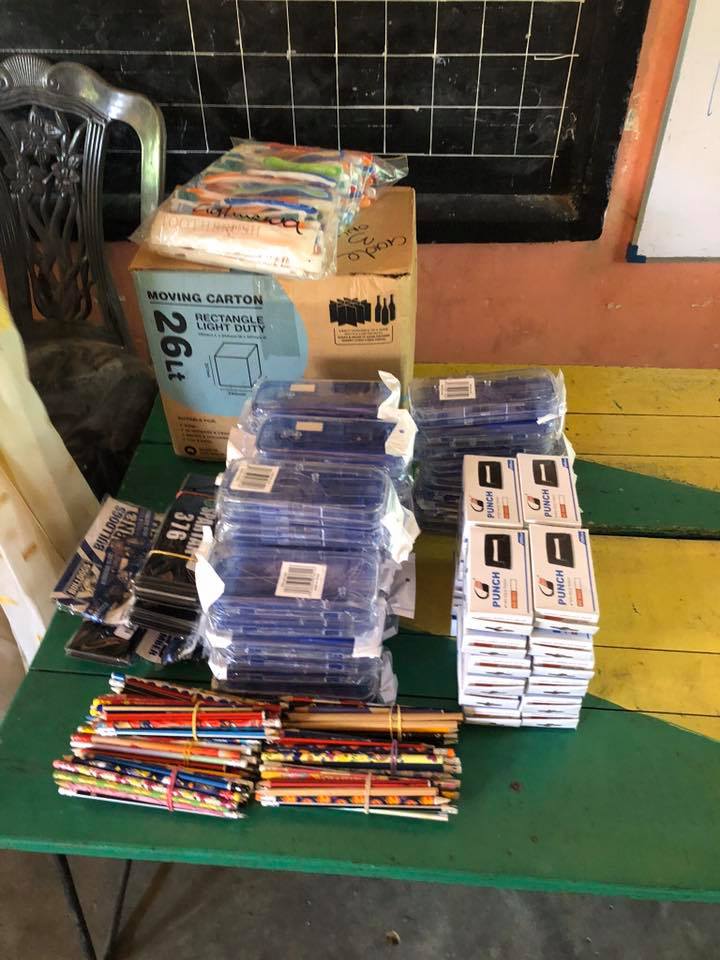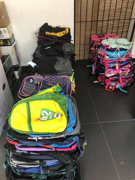 Each year now for 12 years I’ve been making the journey to the schools we support to gift to each child a school bag filled with exercise books, colouring pencils, grey lead pencils, basically all the things that every child needs at school. Our collections are never ending. No sooner is a shipment on the high seas than we start the collections all over again.